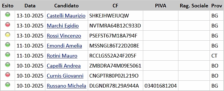 Esempio web di griglie dinamiche, intuitive e interattive, con caselle di spunta e caselle di testo modificabili, links, bottoni, icone, barre di progressione: